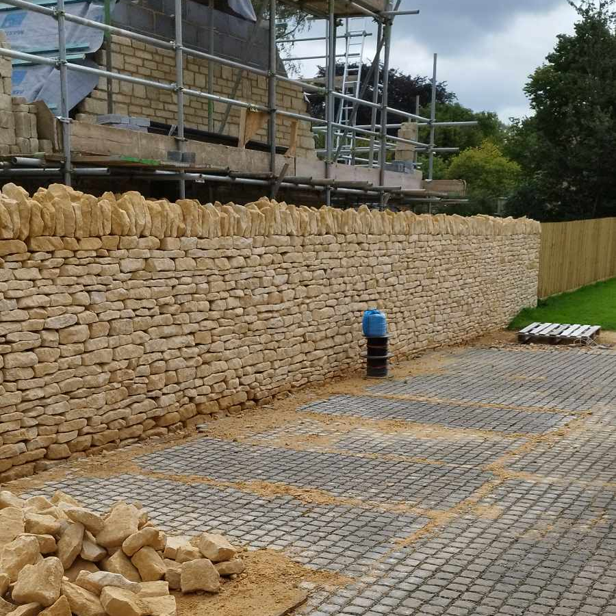 Contemporary dry stone walling for housing developers to improve aesthetics or meet local authority planning requirements throughout Cirencester and the surrounding villages.